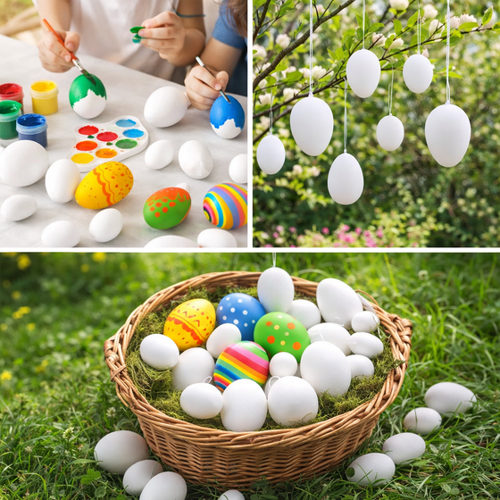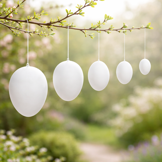 36x Ostereier aus Kunststoff Weiß – 5 Größen zum Bemalen & Aufhängen