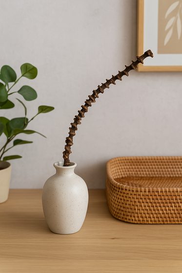 Verleihe deinem Zuhause eine besondere Note mit dem getrockneten Bananenstiel (Musa acuminata) – einem echten Naturprodukt aus Indien. Jeder Zweig ist einzigartig gewachsen, von Hand geerntet und wurde schonend getrocknet, um die organische Schönheit und Struktur zu erhalten. Mit einer Länge von etwa 25–35 cm ist dieser Naturast vielseitig einsetzbar: als Vasendeko, in Tischgestecken, für DIY-Projekte oder als Akzent in minimalistischen, rustikalen oder tropischen Wohnkonzepten. Die dunkle, leicht gewundene Form bringt lebendige Natürlichkeit in jeden Raum. Ob als dezente Einzeldekoration oder eingebettet in ein stilvolles Arrangement – der Bananenstiel ist ein Statement für alle, die authentisches Design mit nachhaltigem Charakter schätzen. Hol dir ein Stück Natur direkt in dein Zuhause – echt, exotisch, einzigartig.