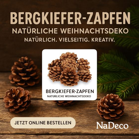 Naturbelassene Bergkiefer-Zapfen (Pinus mugo) in der Größe ca. 3–5 cm, verpackt mit 0,5 kg (ca. 100–130 Stück). Ideal für Weihnachtsdeko, Adventskränze, Tischgestecke und Bastelarbeiten. Chemisch unbehandelt, sorgfältig getrocknet und in gleichbleibender Qualität vom Naturdeko-Spezialisten NaDeco.de. Die abgebildete Menge entspricht der gelieferten Menge. Vielseitig einsetzbar – ob als winterliche Streudeko, im Kranz, als Baum- oder Geschenkverzierung oder für kreative DIY-Projekte.