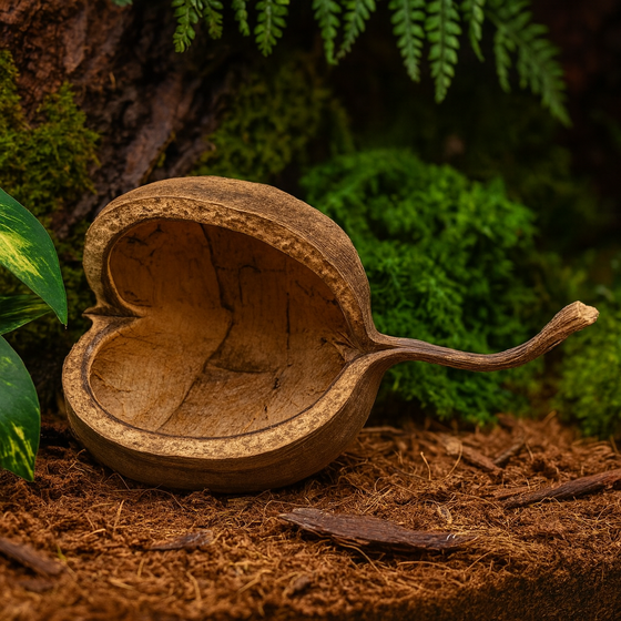 In Terrarien wird die Buddhanuss als Höhle oder dekoratives Element eingesetzt. Sie schafft Verstecke für Reptilien, Amphibien oder Insekten und passt perfekt in bioaktive Terrarien. Ihre natürliche Optik harmoniert wunderbar mit Moos, Rinde und Erde und unterstützt ein artgerechtes, naturnahes Umfeld für deine Tiere. Die Oberfläche kann sogar bepflanzt werden – ideal für kreative Terrariengestaltung.