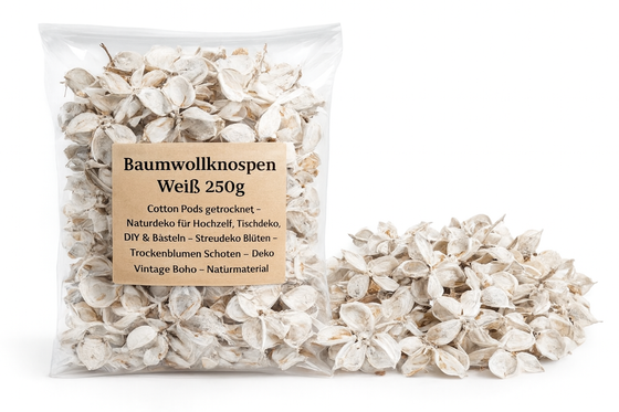 Cotton Pods Weiß 250g – Natürliche Baumwollknospen für stilvolle Dekorationen, Hochzeiten & DIY-Projekte