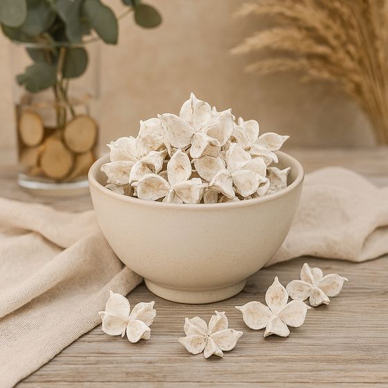 Die getrockneten Baumwollblüten stammen aus nachhaltigem Anbau in Indien und werden sorgfältig verarbeitet, ohne künstliche Zusätze. Jede Knospe ist ein Unikat – leichte Abweichungen in Farbe, Form und Größe unterstreichen die Authentizität dieses Naturprodukts. Mit diesem Material entscheidest du dich bewusst für eine umweltfreundliche, stilvolle Dekoalternative zu Kunststoff oder Massenware.
