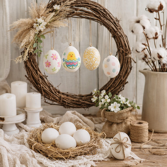 Dank der vorhandenen Ausblasöffnung lassen sich die Eier ganz einfach mit Drahtaufhängern oder Naturbändern bestücken. So entstehen im Handumdrehen hängende Dekoelemente, die sich hervorragend an Frühlingszweigen, Fenstern oder Ostersträußen präsentieren lassen. In Kombination mit Moos, Perlhuhnfedern, Weidenzweigen oder kleinen Kükenfiguren entfalten die weißen Enteneier ihre volle Wirkung und bringen natürlichen Charme in jeden Raum.