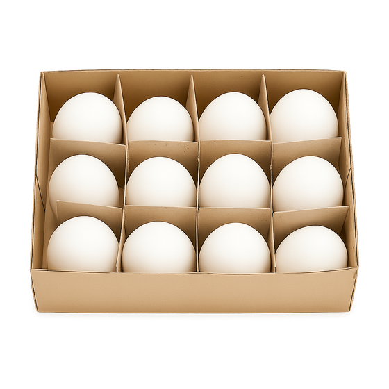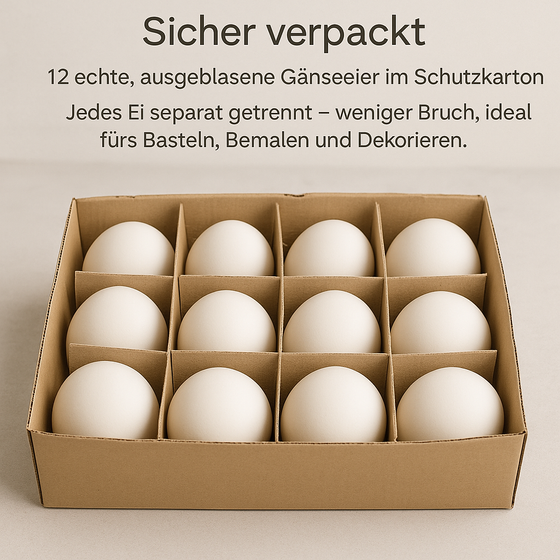 Gänseeier, groß, im Karton mit 12 Stück, entleert und gereinigt, 4-5cm Durchmesser, 7-9cm hoch