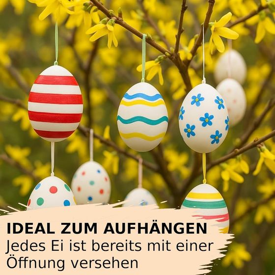 Die 24 Dekoeier werden sicher im Karton mit Einzelkammern verpackt geliefert, sodass sie beim Transport gut geschützt sind. Sollte dennoch ein oder mehrere Eier zu Bruch gehen, wird ein anteiliger Ersatz gewährt – unkompliziert und kundenfreundlich.