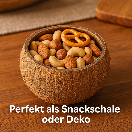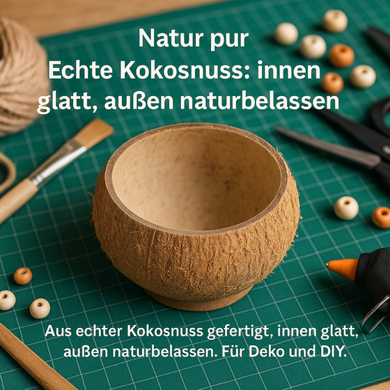 Bei diesem naturbelassenen Kokosnuss Becher handelt es sich um ein Kokosnuss Gefäß mit einem Durchmesser von etwa zehn bis 13 und einer Höhe von etwa acht bis zehn Zentimetern. Bei dem Kokos Becher handelt es sich um eine Kokosnuss, die von ihrem Schwimmpanzer, also der äußeren Schale, befreit und im Anschluss daran geöffnet und das Fruchtfleisch entfernt wurde. Die Kokosnuss Schale wird sauber geliefert und der Rand des Kokosnuss Bechers ist geschliffen und entkantet. Zudem ist der Kokosnuss Becher standfest, so dass er für die unterschiedlichsten Zwecke eingesetzt werden kann. So kann die Kokosnuss als Grundlage zum Herstellen von Vogelspielzeug ebenso dienen wie als Futterschale oder Versteck für Terrarien, kann es auch zum Basteln von Lampenschirmen für Lichterketten verwendet werden. Letztere eignen sich hervorragend als Dekorationselement um eine Garten- oder Beachparty zu perfekt in Szene zu setzen. Daneben kann der Kokos Becher auch genutzt werden, um ihn mit einem Teelicht zu bestücken und als Dekoelement auf Tischen, Sideboards oder in Regalen zu platzieren. Da es sich bei diesem Kokosbecher um ein reines Naturprodukt handelt, kann er in Form, Farbe und Größe von der Abbildung und der Beschreibung abweichen. Das Produkt ist im NaDeco Online Shop in großen Mengen auf Lager.