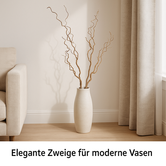 Bring die Natur in dein Zuhause – mit unseren handverlesenen Korkenzieherzweigen im praktischen 3er-Bund. Jeder Zweig misst ca. 100–120 cm und begeistert durch seine natürliche Wuchsform und die kunstvoll gebogenen Linien. Ob als stilvolle Dekoration in einer hohen Bodenvase, als österlicher Zweig mit Anhängern oder als organisches Gestaltungselement im DIY-Bereich – diese Äste lassen sich vielseitig einsetzen. Auch Tierfreunde kommen auf ihre Kosten: Die naturbelassenen Haselzweige eignen sich hervorragend als Sitzstange für Wellensittiche oder andere kleine Vögel – ganz ohne Chemie oder Behandlung. Ein Must-have für alle, die auf der Suche nach authentischer, zeitloser und natürlicher Dekoration sind.