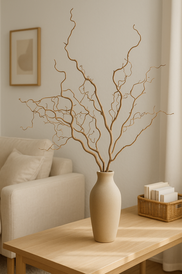 Auch in floralen Dekoarrangements im Boho-Style machen diese Korkenzieher-Zweige in Natur eine ausgezeichnete Figur. In Kombination mit Pampasgras, Allium Cherry, Ruscus, Sorghum-Hirse oder Babala in lassen sich tolle Boho-Trockenblumensträuße für Bodenvasen kreieren. Integrieren Sie zudem große Pfauenfedern oder Straußenfedern und verzieren Sie die Vase mit Bändern aus Naturfasern, ist Ihre Boho-Deko perfekt.