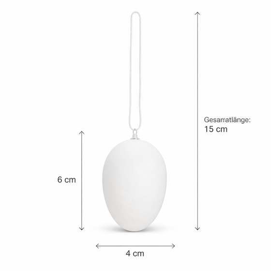 Mit einer Größe von etwa 6 x 4 cm haben die Deko-Eier eine ideale Größe für verschiedenste Dekorationsideen. Ob als klassische Osterstrauch-Deko, als Fensterschmuck oder als kreative Bastelidee – diese weißen Ostereier sind vielseitig einsetzbar und bringen frische Frühlingsatmosphäre in Ihr Zuhause.