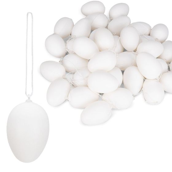 36x Weiße Deko-Ostereier aus Kunststoff – Ostereier zum Bemalen und Aufhängen