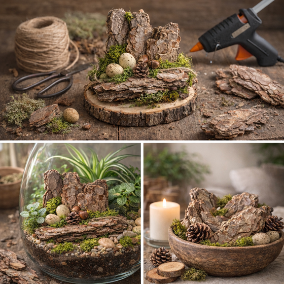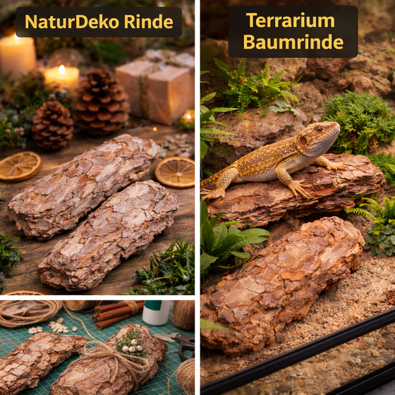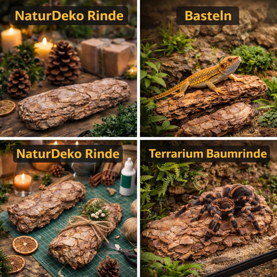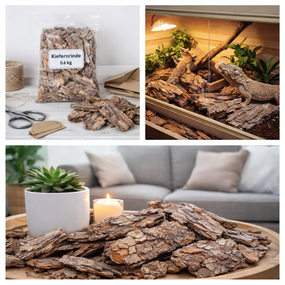 Durch ihre angenehme Größe und splitterarme Oberfläche ist die Kiefernrinde leicht zu verarbeiten. Sie lässt sich schneiden, kleben oder kombinieren – und passt perfekt in moderne, rustikale oder skandinavisch inspirierte Einrichtungskonzepte. Auch im Terrarienbau ist sie beliebt: Als Bodendekor oder Rückwandgestaltung bietet sie Tieren Rückzugsorte und fördert ein naturnahes Klima.