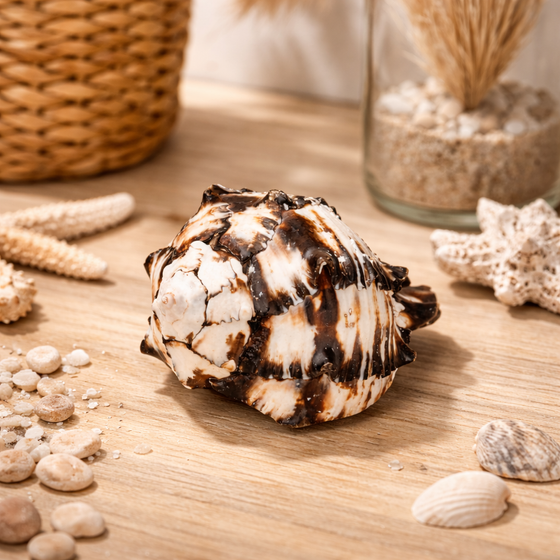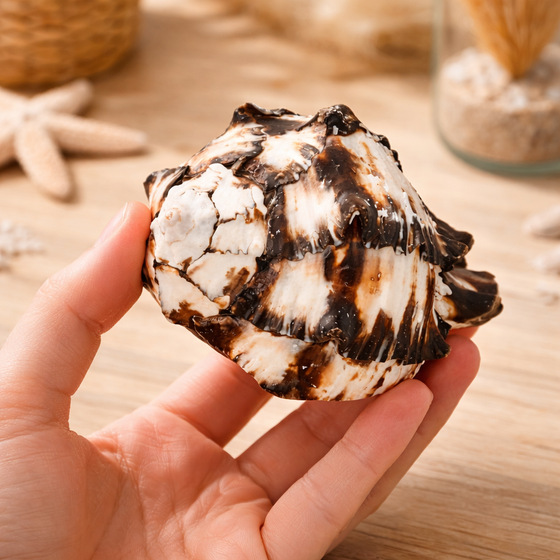 Weil das Gehäuse roh und unbehandelt bleibt, zeigt es seine natürliche Oberfläche mit charaktervoller Struktur. Genau das lieben Fans von Naturdeko, Stranddeko, Küstendeko und Boho Deko: echte Materialien, die Wärme und Authentizität ausstrahlen. Gleichzeitig ist das Schneckenhaus ein vielseitiges Element für kreative Projekte. Ob als Blickfang in Trockenblumen Arrangements, in dekorativen Gläsern, auf Tabletts oder kombiniert mit Treibholz und Fischernetz Deko – die Black Murex setzt einen edlen, maritimen Akzent.