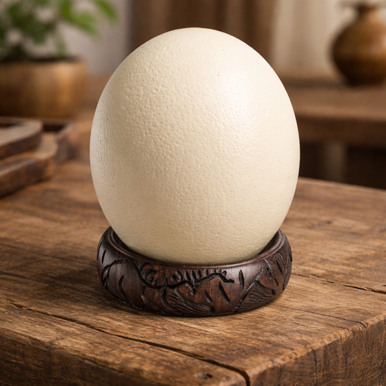 Dieser Straußenei Ständer aus Ebony Holz ist die elegante Basis, wenn du ein Straußenei oder Straussenei sicher, stilvoll und sichtbar präsentieren möchtest. Der handgeschnitzte Holzring hebt dein Sammlerei Stück optisch an, rahmt es harmonisch ein und macht aus einem einzelnen Ei sofort ein dekoratives Highlight für Tisch, Sideboard, Regal oder Vitrine. Durch die dunkle, natürliche Ausstrahlung wirkt der Ringständer edel und warm zugleich und passt besonders gut zu Ethno Deko, Boho Einrichtung, Naturmaterial Deko und modernen Interiors.