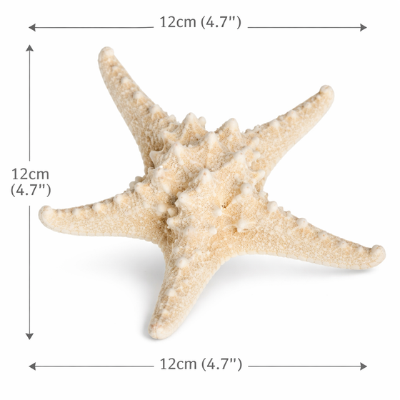 Da es sich bei jedem Exemplar um ein echtes Naturprodukt handelt, können Form, Farbe und Größe leicht variieren. Diese natürlichen Unterschiede sind kein Mangel, sondern Zeichen von Authentizität und machen jeden Seestern zu einem Unikat mit Charakter.