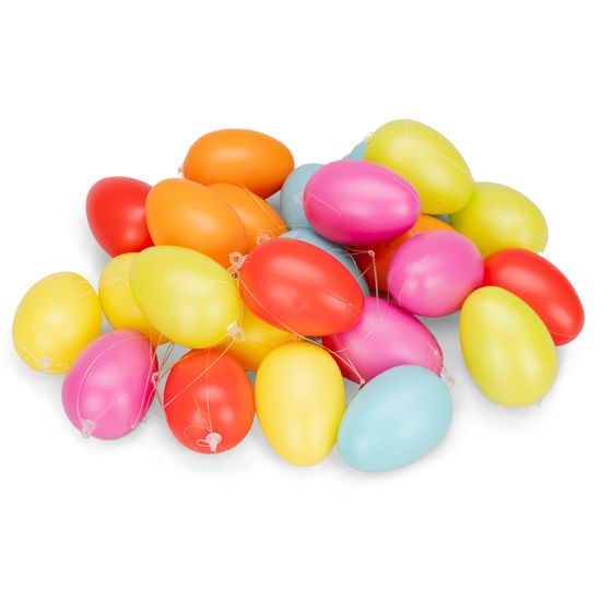 24x Bunte Ostereier aus Kunststoff zum Aufhängen , Größe 6cm