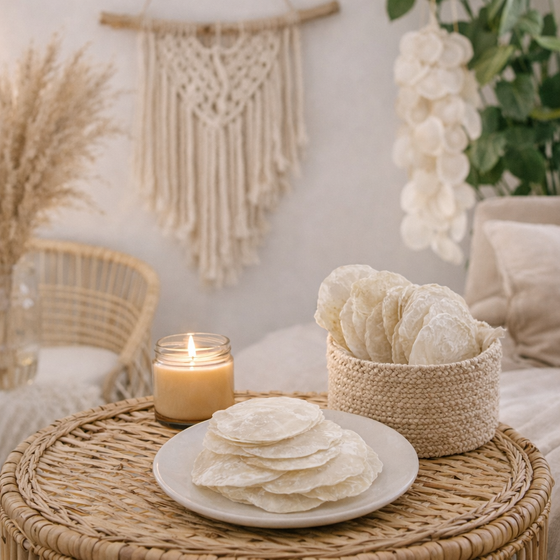 NaDeco steht für hochwertige Naturmaterialien, mit Liebe zur Umwelt und dem Blick fürs Detail. Mit den Capiz Perlmutt Muschelscheiben holen Sie sich ein Stück Natur direkt in Ihre Wohn- oder Eventdekoration – nachhaltig, stilvoll und vielseitig einsetzbar. Setzen Sie neue Akzente in Ihrer Raumgestaltung oder überraschen Sie Ihre Gäste mit einer persönlichen und naturverbundenen Dekoration.