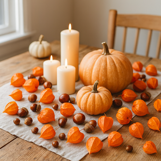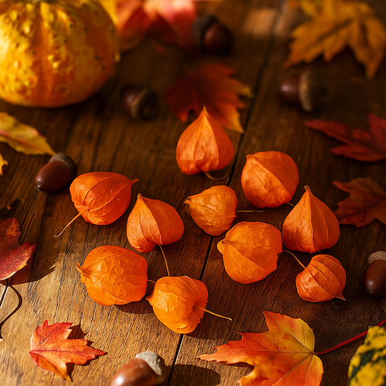 Im Herbst, wenn die Tage allmählich kürzer werden, macht es besonders viel Spaß gemeinsam mit Kindern oder Enkelkindern zu basteln. Möchten auch Sie in Ihrem Zuhause ein gemütlich-herbstliches Flair einziehen lassen, sollten Sie auf Deko aus der Natur setzen. Neben konserviertem Herbstlaub am Stiel eignen sich auch Nüsse, Kastanien, Kürbisse oder diese in einem leuchtenden Orange daherkommenden Köpfe der Physalis franchetii wunderbar, um Herbstdekorationen selbst zu kreieren.