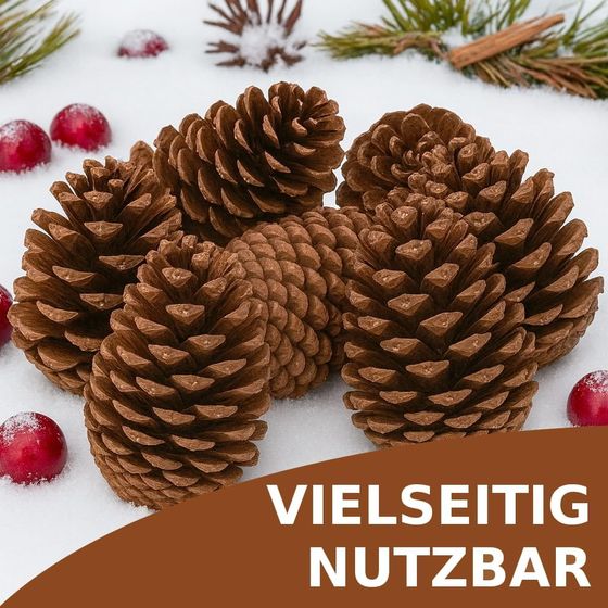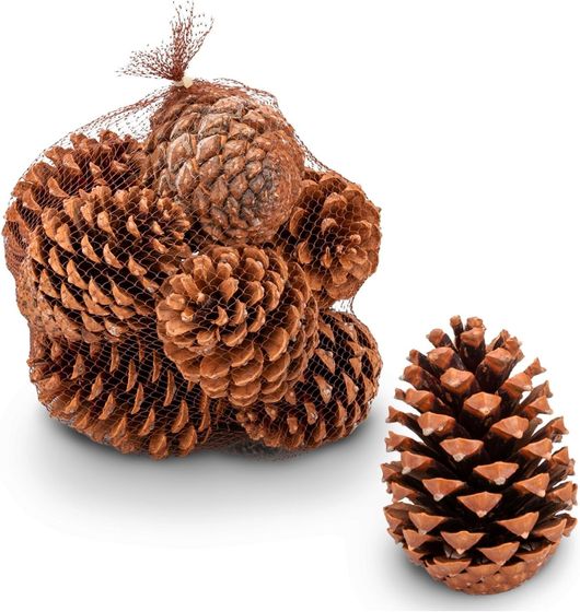 Bei diesen aussagekräftigen Deko-Zapfen handelt es sich um NaDeco Pinus maritima und damit Zapfen um sogenannte See-Kiefer-Zapfen. Die NaDeco Maritima Tannenzapfen werden in einer Packung von 10 Stück geliefert, wobei die Zapfen eine Größe zwischen 10 und 14 Zentimetern besitzen. Die Pinus maritima in Natur wurden einem aufwendigen Trocknungsprozess allerdings keinerlei chemischen Behandlung unterzogen. Die Zapfen sind geöffnet und enthalten keine Samen. Werden die Maritima Zapfen sorgsam behandelt, sind die Meer-Kiefer-Zapfen lange haltbar. Importiert werden die großen Deko-Tannenzapfen aus der Türkei. Die Pinus maritima von NaDeco sind ideal, um festliche Adventsdeko zu basteln und Wohn- und Geschäftsräume in der Weihnachtszeit mit hübschen Dekoarrangements zu verzieren. Die großen Tannenzapfen der Pinus maritima können zum Dekorieren von Wohn- und Esszimmern im eigenen Zuhause ebenso zum Einsatz kommen wie zum Verschönern von Restaurants, Hotels sowie Ladengeschäften und Schaufenstern. Die getrockneten Baumzapfen können als Christbaumschmuck, zum Integrieren in Adventskränze und Weihnachtsgestecke, zum Befüllen von Glasvasen und Schalen sowie zum Basteln kleiner Figuren und zur sonstigen Weiterverarbeitung dienen. Die Deko-Zapfen der Pinus maritima lassen sich zum Umsetzen der verschiedenen Dekovorhaben ideal mit weiteren natürlichen Dekoelementen aus dem Sortiment des NaDeco Online-Shops wie zum Beispiel Curly Moos, Candy Zuckerstangen, Brunch Bällen, Zimtstangen und getrockneten Orangenscheiben kombinieren. Die NaDeco Maritima Deko-Zapfen wurden weder eingefärbt noch einer chemischen Behandlung unterzogen, weshalb die Zapfen der See-Kiefer auch als Knabber- und Schreddermaterial für Vögel und andere Kleintiere verwendbar sind. Da es sich bei diesen Pinus maritima um reine Naturprodukte handelt, ist es möglich, dass die Deko-Zapfen in Bezug auf die Form, Farbe und Größe von der Produktbeschreibung und der Artikelabbildung abweichen.