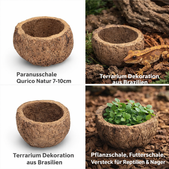 Im Bereich der Terraristik dient die Paranussschale als natürliche Futterschale, als Trinknapf oder Rückzugsort für Reptilien, Amphibien, Nagetiere oder Insekten. Da die Schale weder behandelt noch lackiert ist, ist sie absolut tierverträglich und bleibt auch bei Feuchtigkeit dauerhaft formstabil. Damit ist sie nicht nur ein dekoratives Highlight, sondern auch ein funktionales Zubehör für naturnah gestaltete Lebensräume.