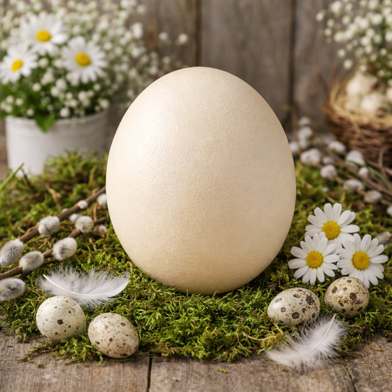Kombinieren Sie das Straußenei mit weiteren ausgeblasenen Eiern und Naturmaterialien aus unserem Sortiment für ein stimmiges Gesamtbild. Entdecken Sie dazu auch diese dekorativen Highlights: