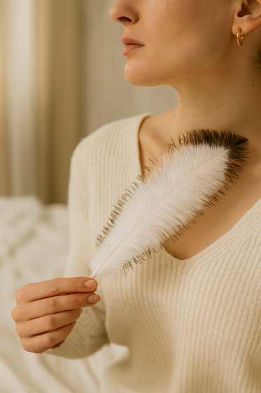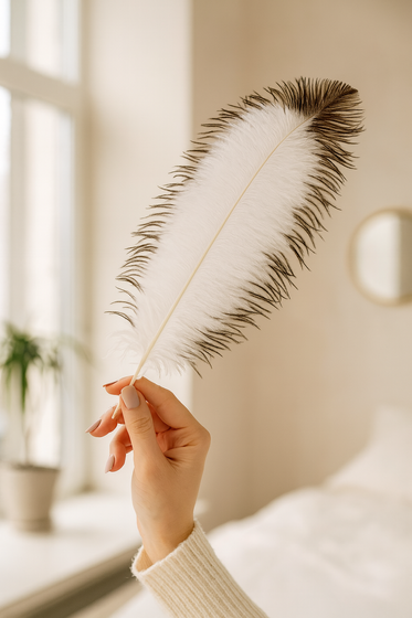 Auch im Wellness-Bereich findet die Feder Verwendung – als zarte Massagefeder, z. B. für Partnermassagen oder zur sensorischen Stimulation. Ihre feine Struktur sorgt für ein angenehm kribbelndes Hautgefühl.