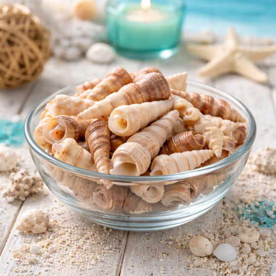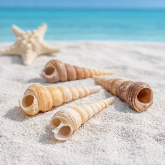 Die Turritella terebra Schnecken unterliegen keinen Artenschutzbestimmungen und dürfen frei gehandelt werden – ein großer Vorteil für Händler, Bastler und Dekoprofis. Ihre neutrale Farbgebung passt hervorragend zu weiteren Naturmaterialien wie Treibholz, Korallen, Muscheln oder Seeigeln. So entstehen harmonische und naturnahe Arrangements für jedes Ambiente – von der maritimen Hochzeit bis zur entspannten Spa-Atmosphäre.