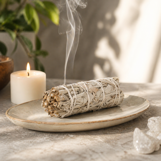 Weißer Salbei Räucherbündel ist ein naturbelassenes Räucherwerk für alle, die ihre Räume bewusst klären und eine harmonische Atmosphäre schaffen möchten. Der kompakte Smudge Stick aus hochwertigem weißem Salbei, auch als Salvia apiana bekannt, wiegt ca. 25–30 g und besitzt eine Länge von ca. 10 cm. Damit eignet er sich ideal für spirituelle Reinigung, energetische Hausräucherung, Meditation, Yoga und persönliche Rituale im Alltag. Beim Verglimmen entfaltet der kalifornische weiße Salbei seinen typisch würzig-aromatischen Duft, der von vielen Menschen als klärend, intensiv und ausgleichend geschätzt wird. Das Räucherbündel ist 100 Prozent natürlich, sorgfältig gebunden und einfach in der Anwendung. Zum Räuchern wird die Spitze angezündet, die Flamme kurz ausgeblasen und der aufsteigende Rauch anschließend im Raum verteilt. So lässt sich eine angenehme Umgebung für Ruhe, Konzentration und neue Energie schaffen. Besonders beliebt ist weißer Salbei zum Ausräuchern von Wohnräumen, Eingangsbereichen, Praxisräumen oder Meditationsorten. Auch für regelmäßige Reinigungsrituale im Zuhause ist dieses Salbei Räucherbündel eine passende Wahl. Dank seines handlichen Formats eignet sich der Smudge Stick sowohl für Einsteiger als auch für erfahrene Anwender. Ob zur Raumreinigung, zur Vorbereitung auf Meditation oder als festes Ritual für mehr Achtsamkeit, dieses Räucherbündel verbindet traditionelle Verwendung mit natürlicher Qualität. Weißer Salbei ist seit langer Zeit für Räucherrituale bekannt und wird heute besonders wegen seiner vielseitigen Anwendung, seines charakteristischen Duftes und seiner naturverbundenen Ausstrahlung geschätzt.